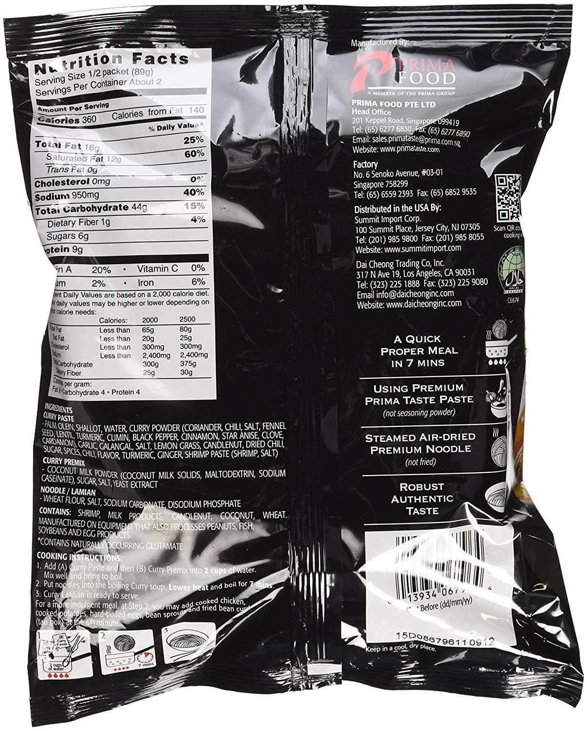Prima Taste Singapore Laksa Lamian Noodles, 6.2 Oz Each (Pack of 4)